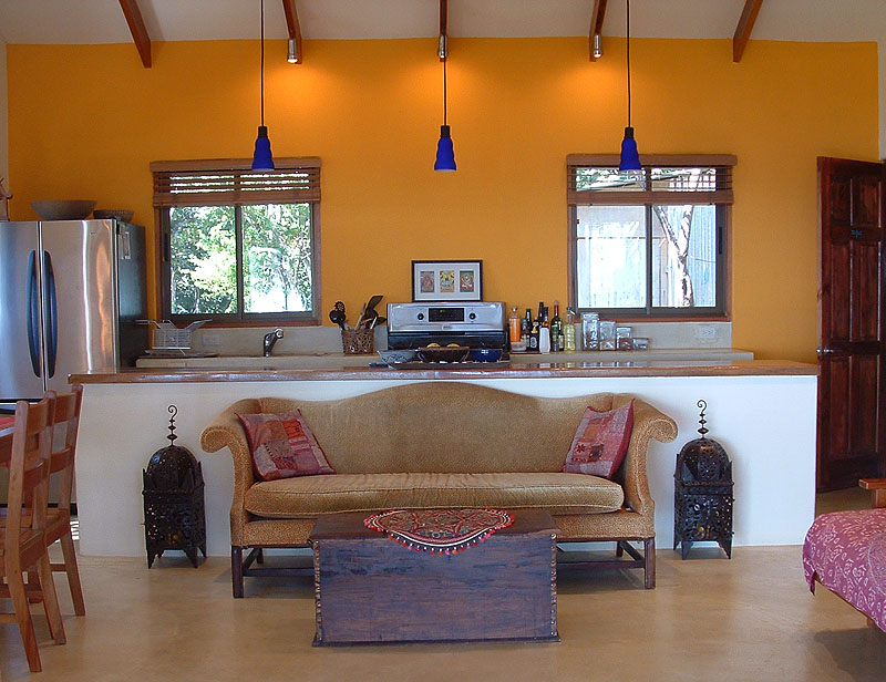 1 king (or 2 twin beds), a day bed (twin size), and a fold-out Futon (queen size), with full kitchen and a large ocean view deck. Maximum occupancy of 4 people. Two bathrooms – the casita now has a new large outdoor/garden bathroom in addition to the smaller bathroom it had before.