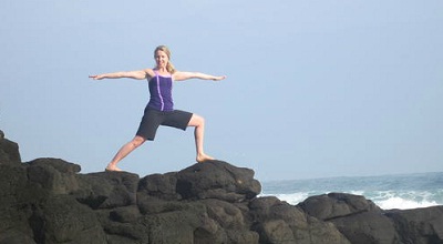 woman practicing yoga at the beach